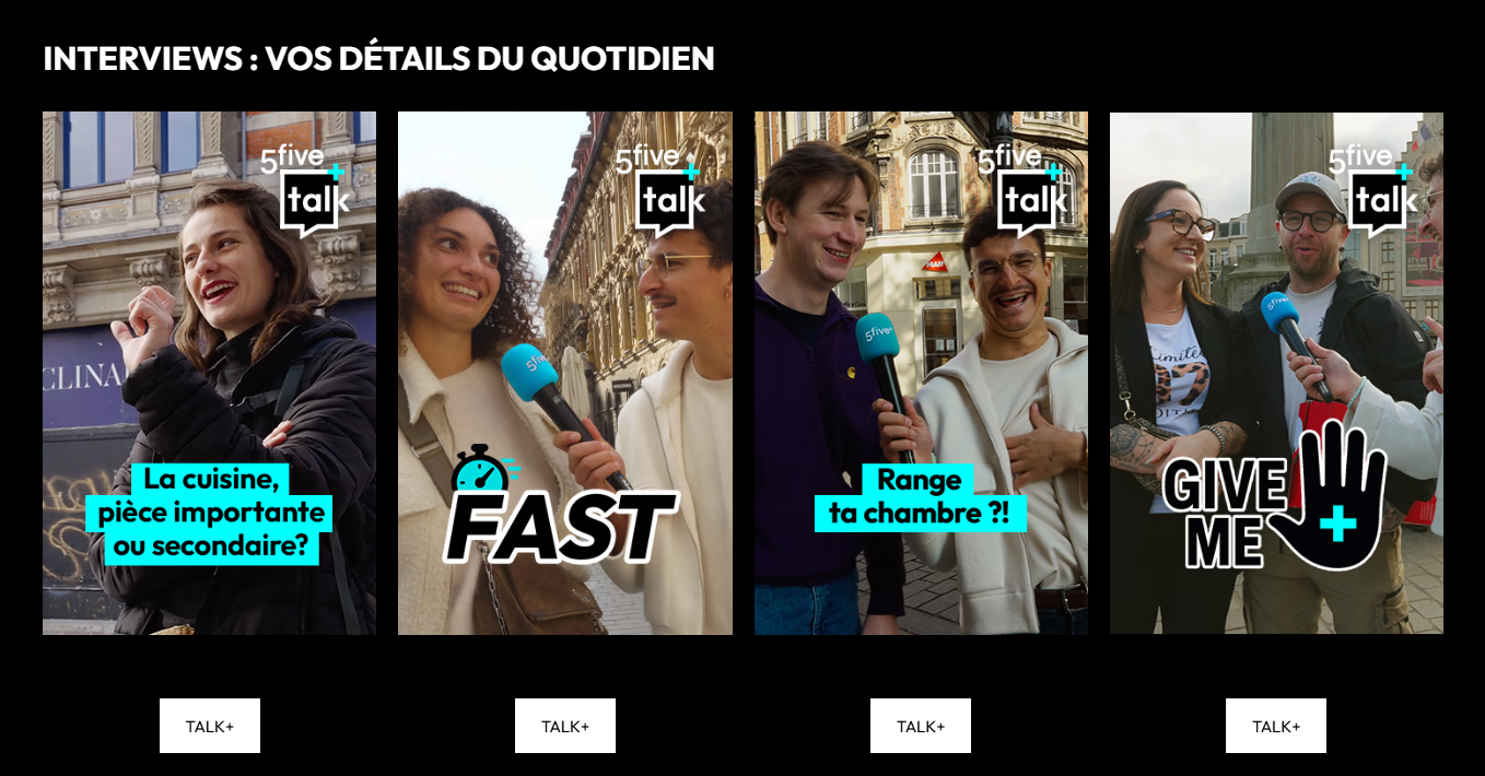 Sur 5five+, découvrez des formats courts et malins : documentaires, podcasts, articles, micro-trottoirs… Une façon originale de redécouvrir le quotidien, avec anecdotes, histoires et clins d’œil à chaque coin de page.