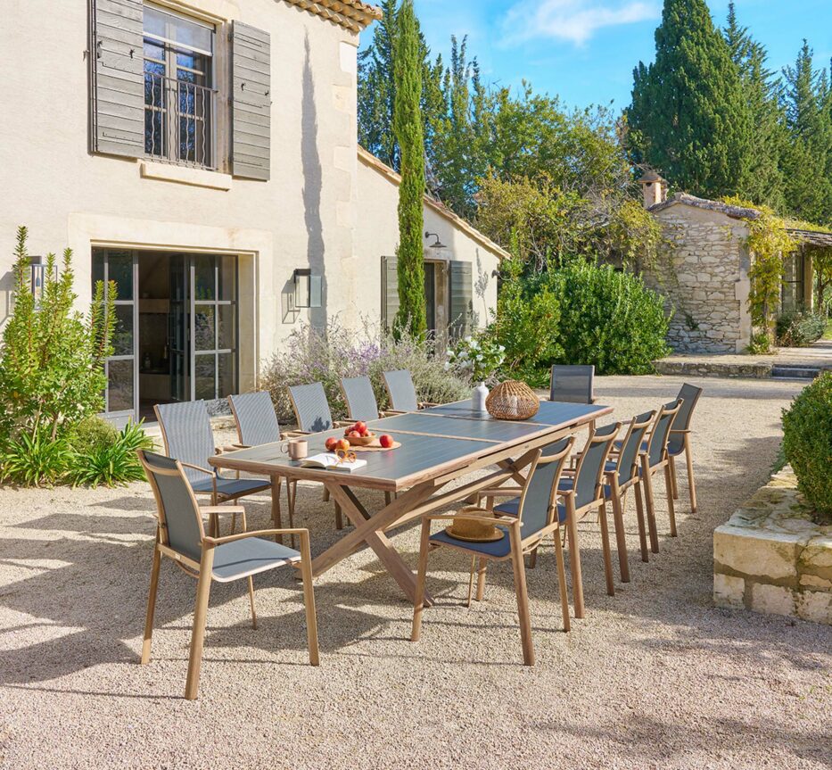 Découvrez notre univers dédié à l’art de vivre en plein air : salons, tables, chaises, pergolas, parasols, transats, accessoires…